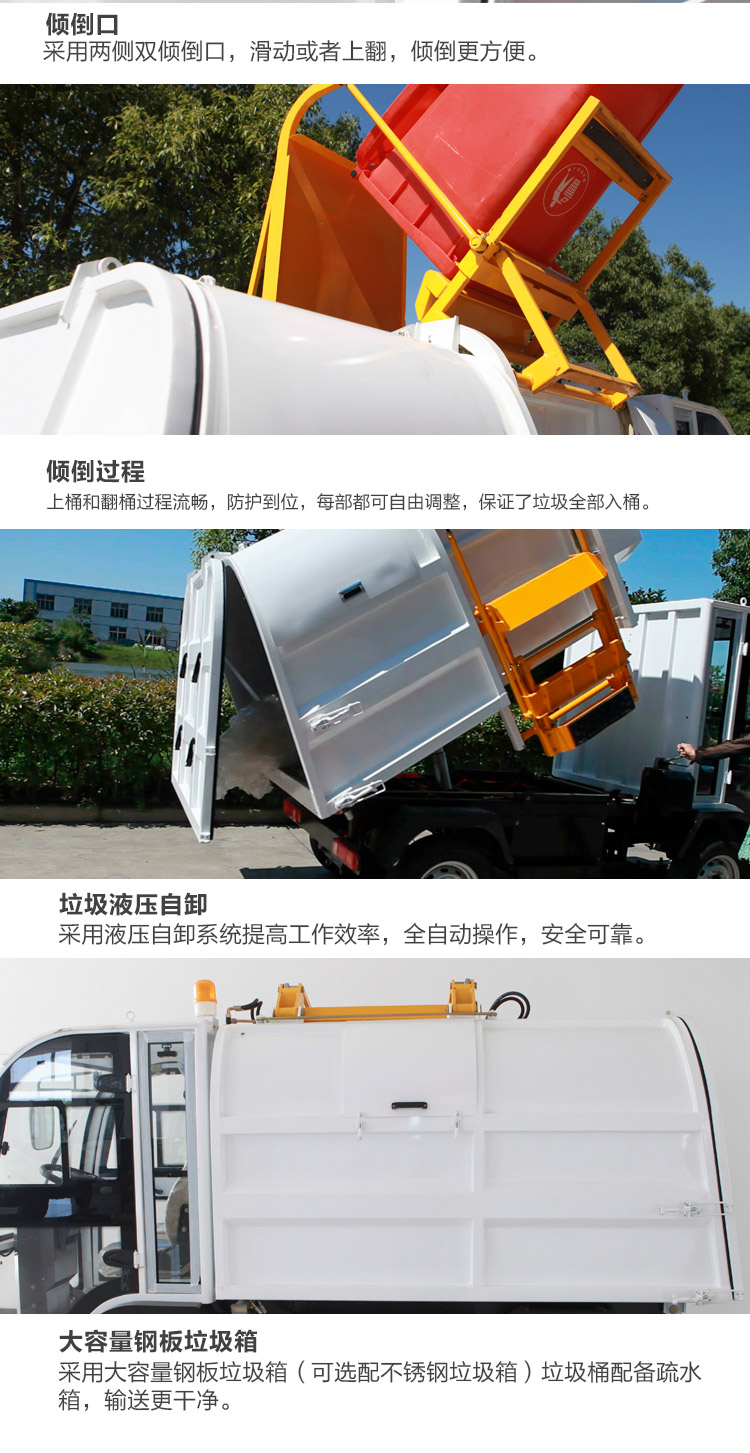 上桶和翻桶过程流畅,防护到位,每部都可以自由调整,保证了垃圾全部入桶